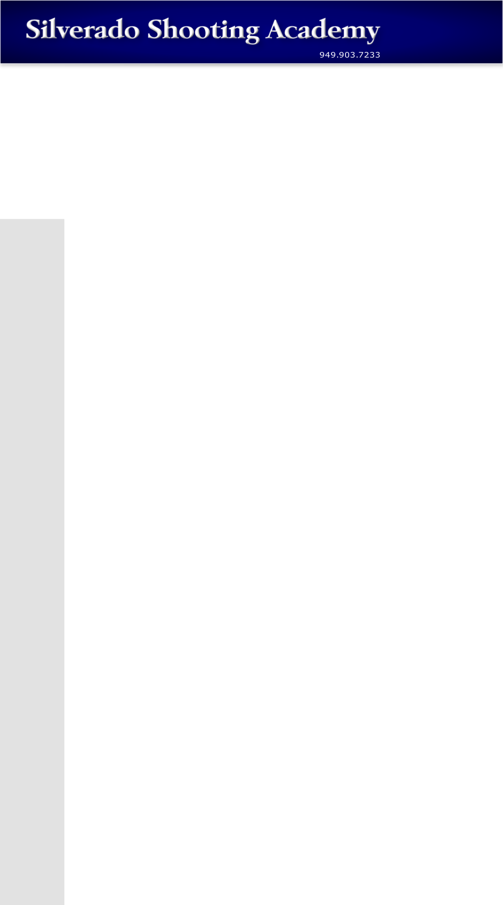 Successful completion of this course is a prerequisite and foundation for all other courses. Open to students age 12 and above. Minors under age 12 are accepted on a ‘case by case’ basis. Students who successfully complete this course can expect to have skills on par with a first-year sports action shooter. An optional certificate of successful completion is available to students who score 95% or more on a post training exam.